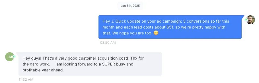 It's your business, so we want you to understand what we're doing. Without technical mumbo jumbo, we'll explain how your campaigns are doing, how much the ROI (Return On Investment) is and what we're doing to improve.
